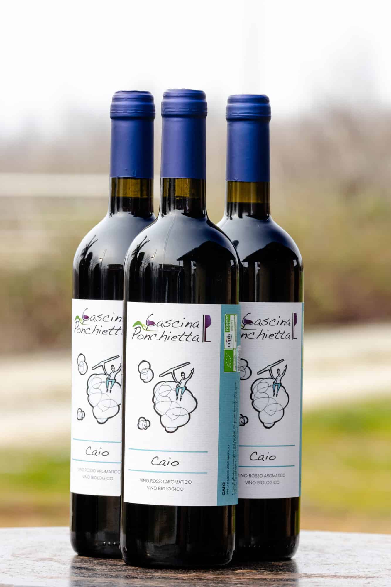 – Caio ORGANIC aromatic red wine: this is a particular dry rosé wine obtained from the vinification of 100% “Brachetto” grapes, a long-cluster grape variety grown in the municipality of Montà. The grapes are usually harvested around the middle of September and the must is fermented in steel tanks with cold maceration.
